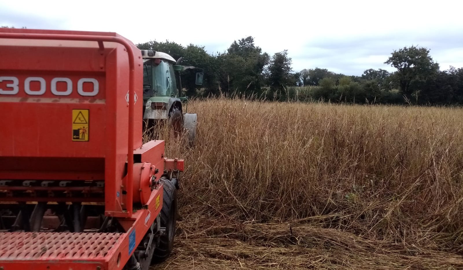 A regulação do trevo está em evolução, inicialmente havia apenas uma regulação química, mas há um ano eles cortam a palha e o trevo após a colheita com um rastelo de solo para misturar os resíduos da palha ao trevo e acelerar sua decomposição. Essa prática limita os efeitos colaterais do glifosato, conhecido por retardar a degradação da palha. Assim, quando o glifosato é aplicado em outubro, a maior parte da palha já desapareceu.